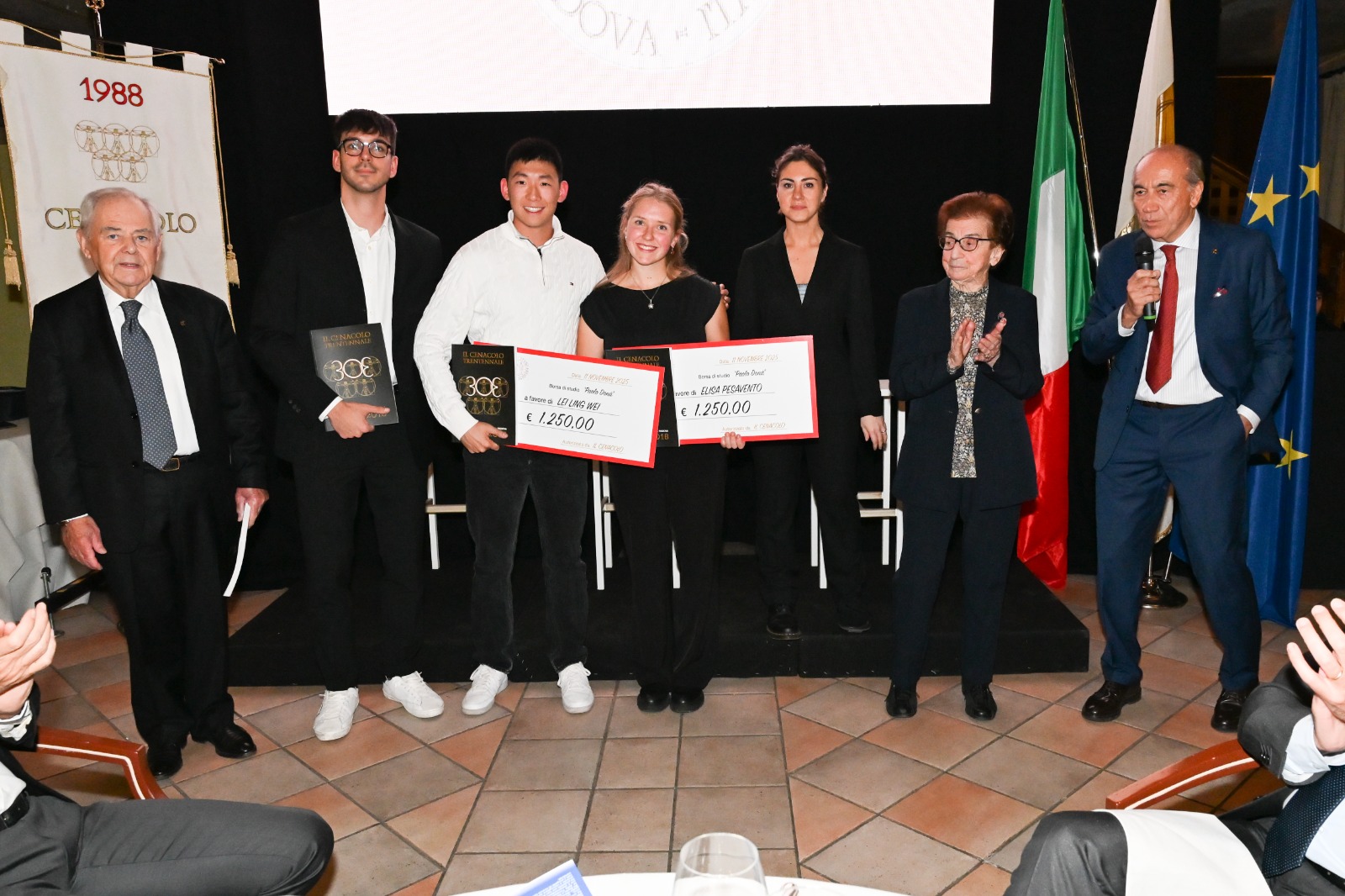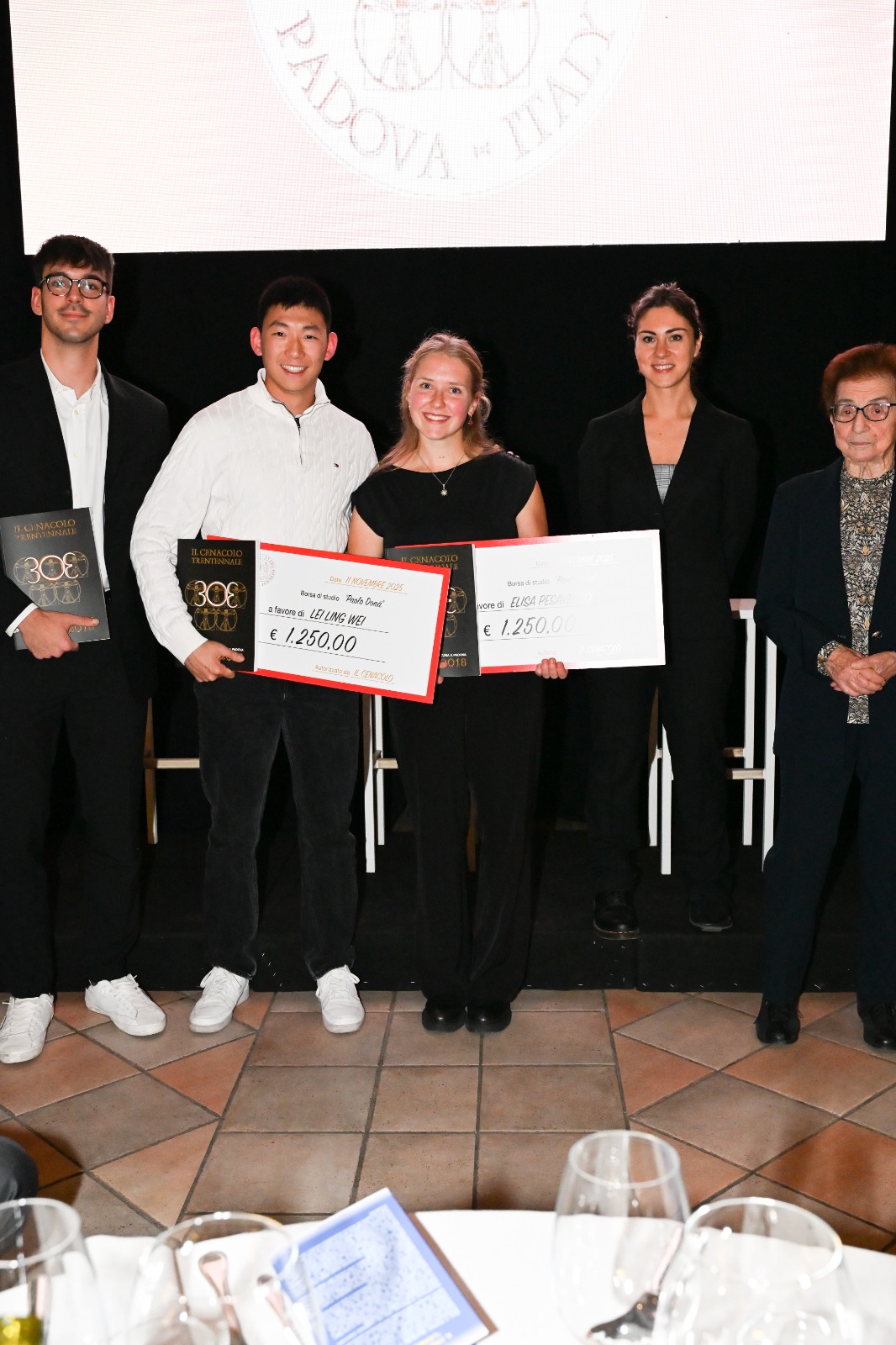 A completare la serata, la consegna della Borsa di Studio offerta da IL CENACOLO, intitolata al Socio e amico, giornalista sportivo Paolo Donà. Premiate le migliori Tesi in Scienze Motorie selezionate da una Commissione Scientifica composta da Docenti Università di Padova e i nostri Soci: Dott. Mauro Frego, Dott. Ian Cardarelli, Medici.